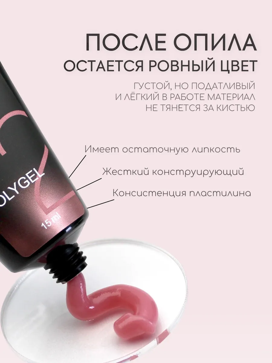 Полигель натуральный розовый - густой, но податливый и лёгкий в работе материал, не тянется за кистью.Жесткий конструирующий. Консистенция пластилина. Крепкий, как акрил, никаких сколов и трещин.