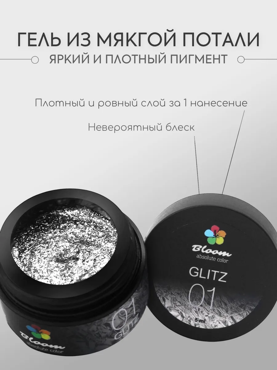 Bloom Гель GLITZ №01 (серебро) 5 мл.