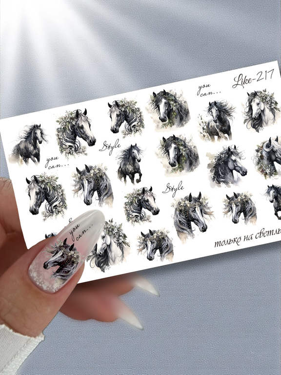 Новая коллекция для ногтей LIKE удивит Вас модными и интересными дизайнами.Размер слайдер: 5*8,5 см.