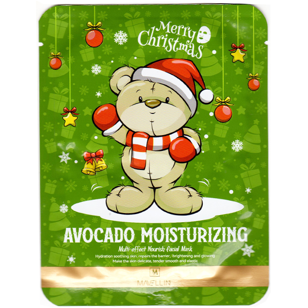 Mavellin Тканевая маска для лица с экстрактом авокадо в новогоднем дизайне Avocado Moisturizing Facial Mask 25 г.